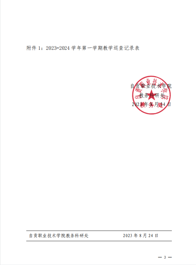 自贡职业技术学院 2023-2024 学年第一学期教学巡查通知