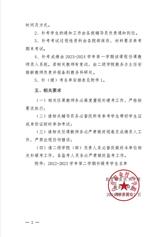 关于开展 2023-2024 学年第一学期 补(缓)考工作的通知