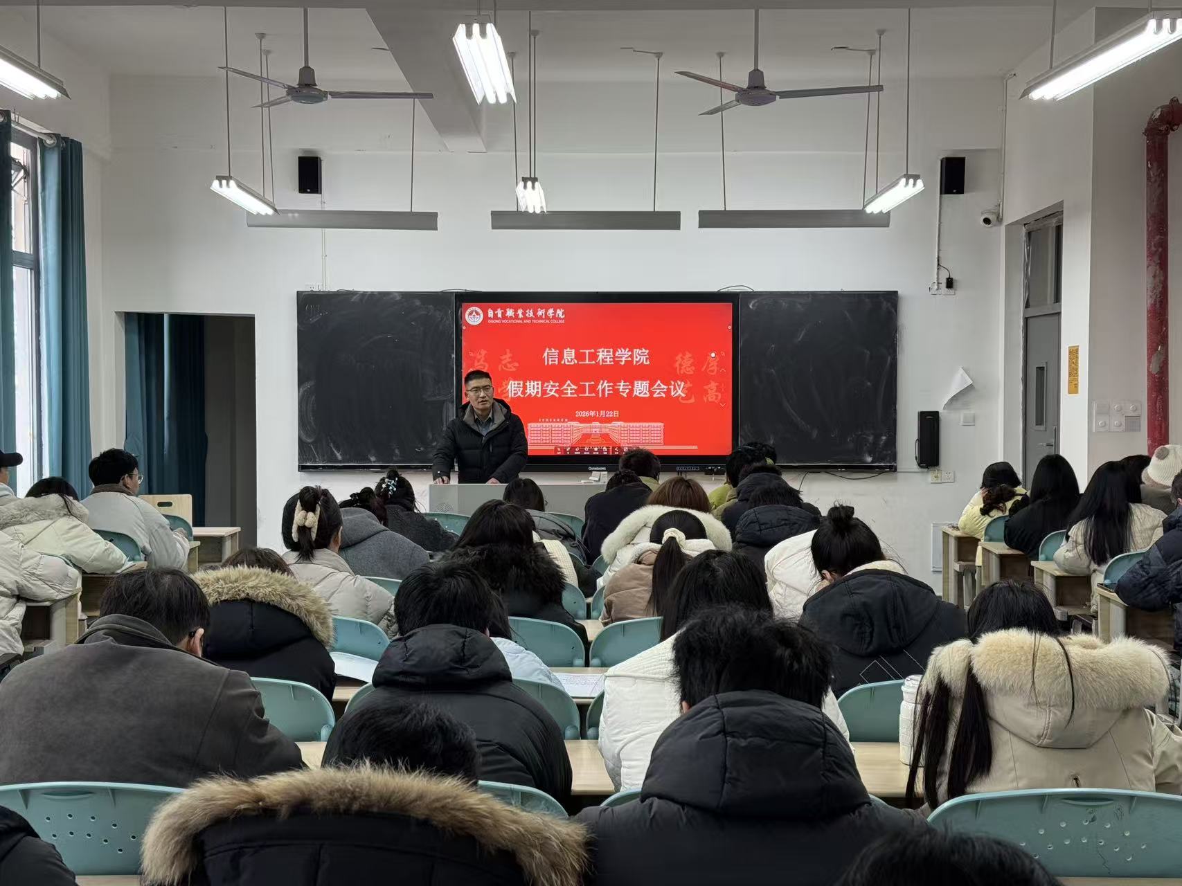 为切实做好假期安全管理工作,保障师生生命财产安全,营造平安稳定的假期环境,2026年1月22日下午15:30,信息工程学院在4502教室召开假期安全工作专题会议。信息工程学院院长罗胜木及信息工程学院全体教职工参加,大会由罗胜木主持。