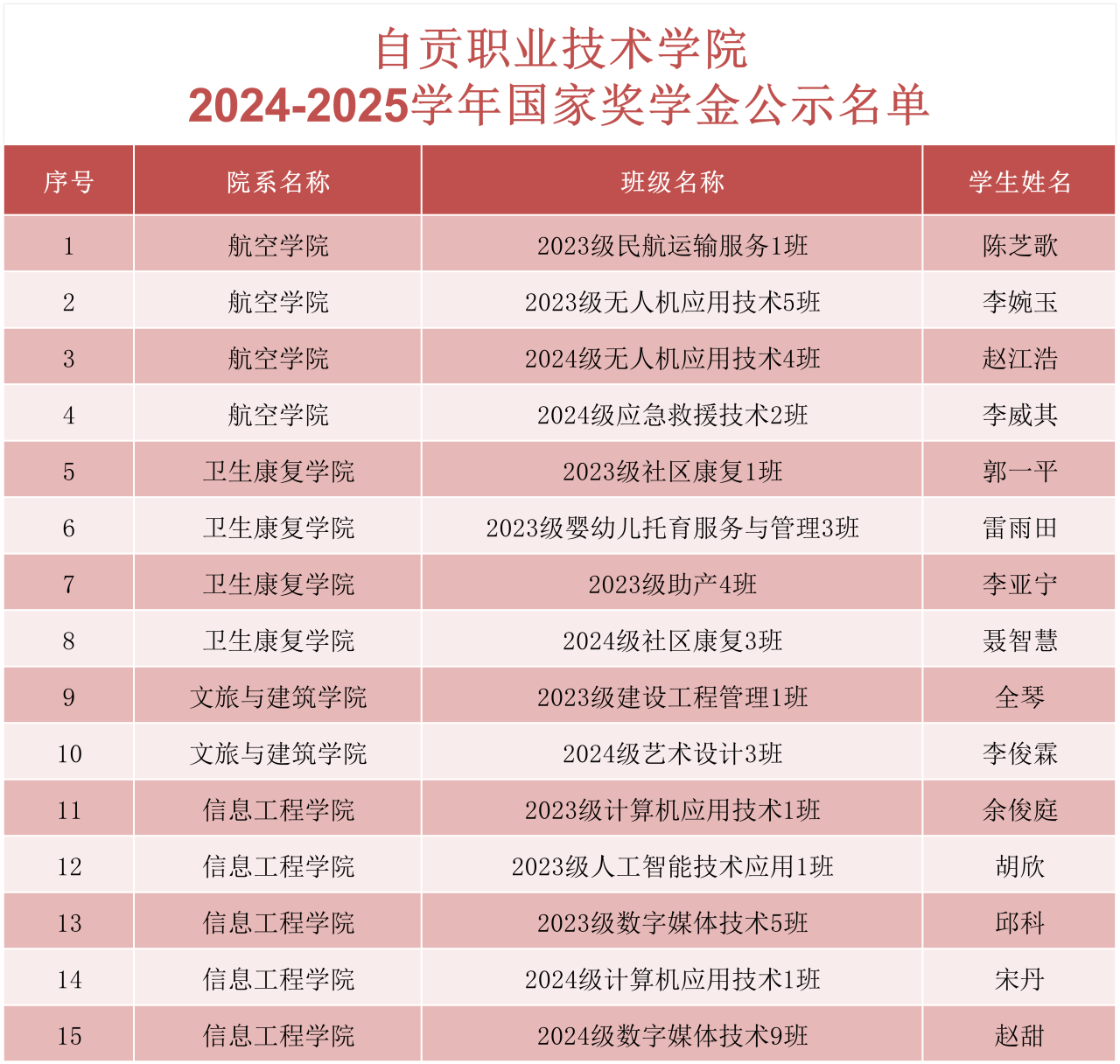 祝贺自贡职业技术学院15名国家奖学金获得者!