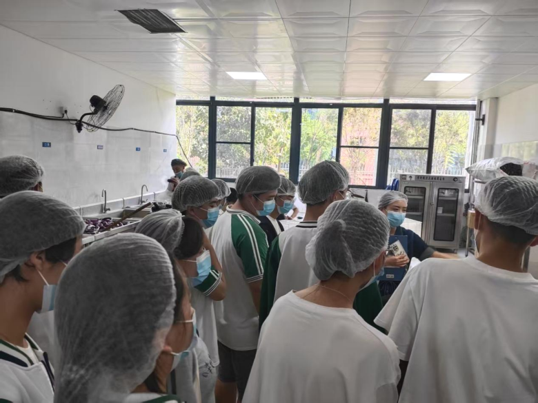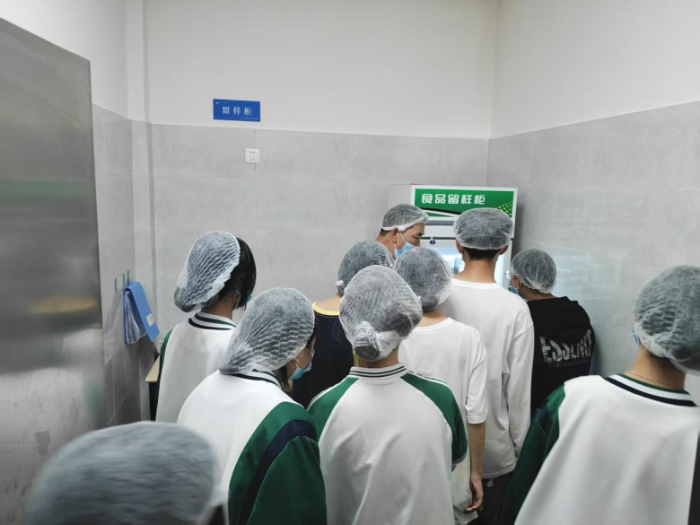 活动伊始,膳食中心主任何丹向参与人员系统介绍了学校食堂的日常运行体系,涵盖食材采购渠道、仓储管理规范、餐品制作流程及食品安全监管机制等核心内容,让学生代表对食堂运营有了整体认知。随后,全体人员严格按照食品安全规范,统一佩戴头套、口罩后,有序进入操作间、烹饪间、洗碗间、留样间等关键功能区域,全面参观食堂后厨各功能区的运行情况。