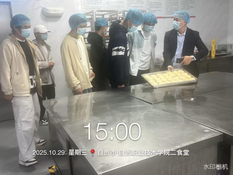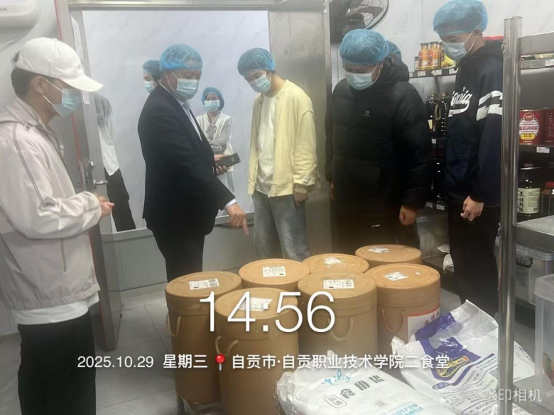 活动现场,学生代表们按要求佩戴好口罩与头套,在食堂工作人员的引导和细致讲解下,依次参观了仓库、洗消间、切配间、烹饪间等核心区域。大家实地查看食材储存规范、餐具消毒流程、菜品加工标准,直观了解食堂运营模式与食品安全管理细节,对餐饮服务各环节有了更深入的认知。