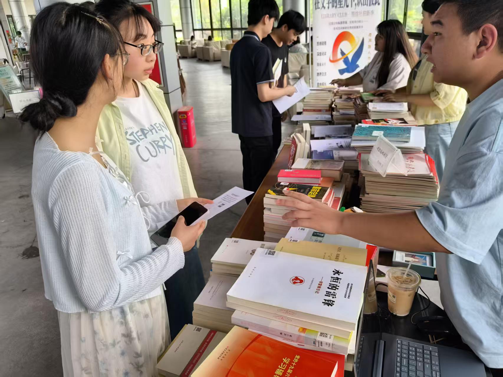 本次经典图书推介专场以“书香润校园 经典启新程” 为主题,在图书馆 1楼设置红色经典、传统经典、当代优秀读物三大特色展陈专区。红色经典专区集中展示党史、新中国史等相关著作,搭配党史时间轴展板,让师生感悟信仰力量;传统经典专区呈现经史子集、国学名著与特色馆藏,展现中华文脉底蕴;当代优秀读物专区收录近年获奖作品与青年热门好书,满足多元阅读需求。活动现场配备志愿讲解团队,为师生提供专属讲解与一对一咨询服务。