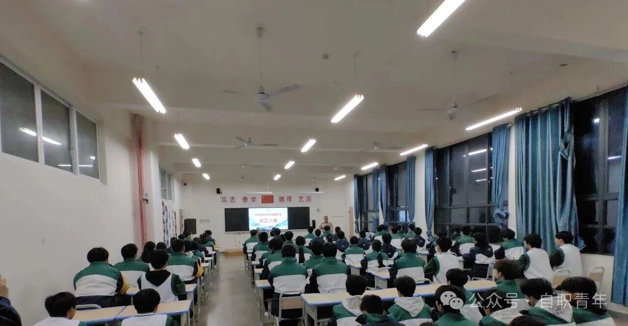 为加强我校学生校园纪律管理,精心打造优良的学习与生活环境,同时积极拓展学生参与学校管理的途径,大力培养学生的自律精神和责任担当。2025年11月17日晚,我校在2317教室召开学生纪律监督管理委员会成立大会。从11月10日起,经学生自荐、班主任推荐、学生处审核,100余名优秀的同学脱颖而出,成为学生纪律监督管理委员会的一员。会议由德育教官邹传强主持,学生处杨树高副主任(主持工作)、学生日常管理组组长邹传强、学生处德育教官刘浩文参与了本次会议。
