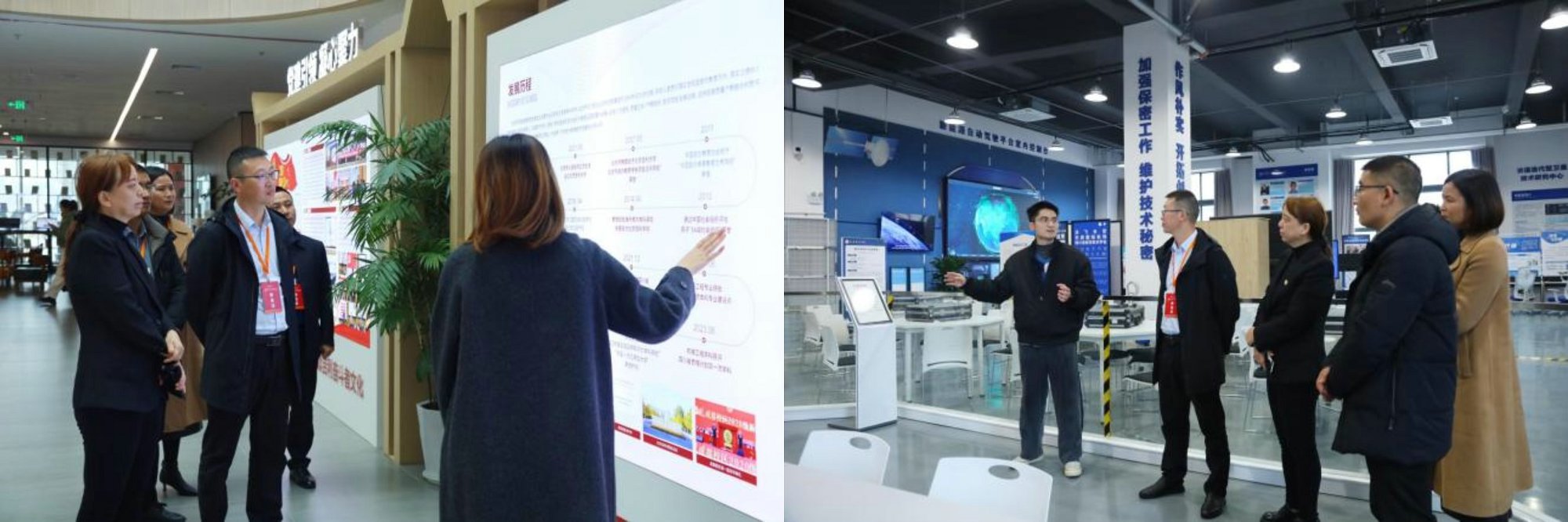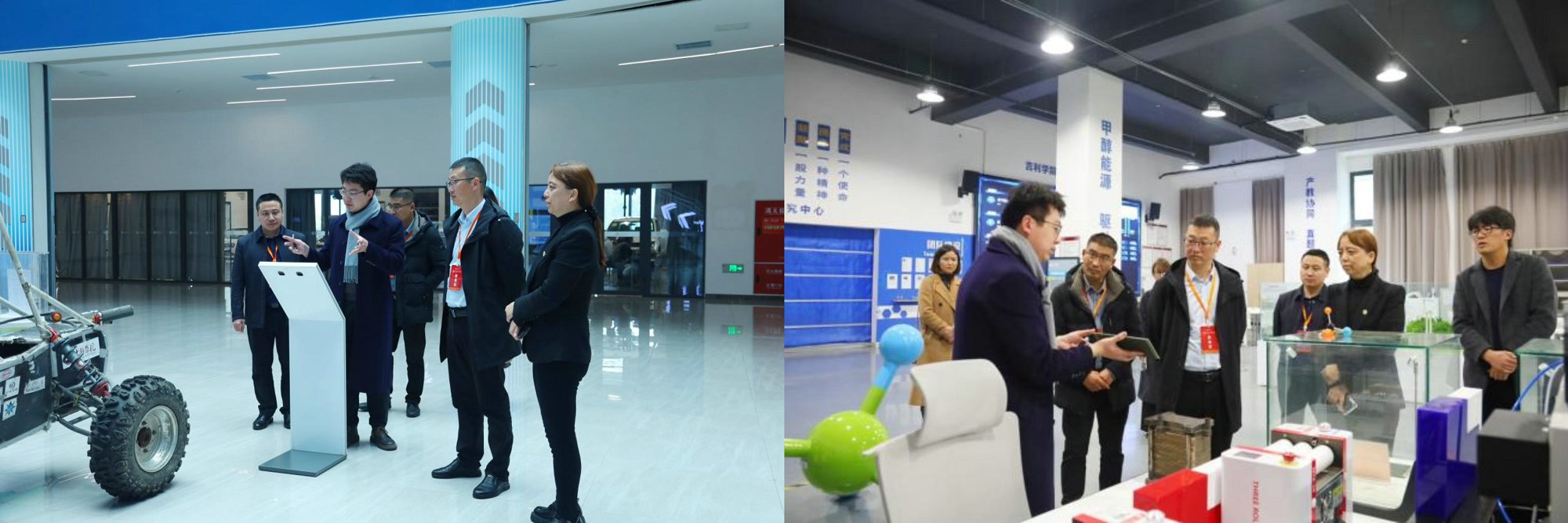 仪式前,在我校王世强副校长带领下,学校就业处、教务科研处、信息工程学院负责人一行,在吉利学院王桂琴副校长陪同下,实地参观了吉利学院汽车工程实验实训中心、天地一体化时空信息获取与应用中心及图书馆,重点考察了甲醇动力研究中心、智能车实验室、储能工程实验室等多个前沿实验实训场所。代表团对吉利学院先进的设施配置、完善的实训教学体系及深厚的产教融合基础给予了高度评价。