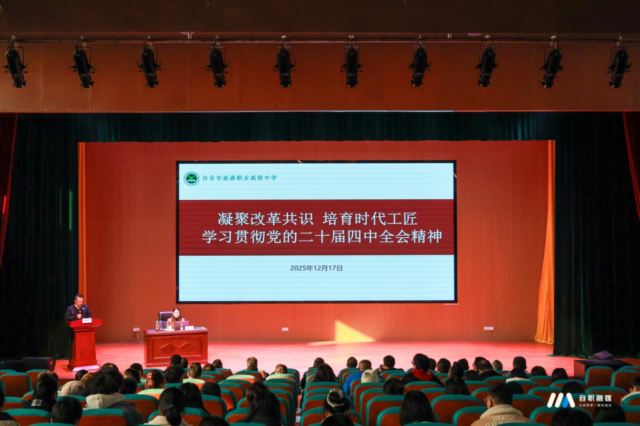 12月17日下午,自贡职业技术学院在学术报告厅3018成功举办党的二十届四中全会精神专题学习讲座。讲座特邀中共自贡市委党校徐琦老师担任主讲,学校执行校长杨林主持。全体校领导、中层干部及教职工共计400余人到场参加学习。