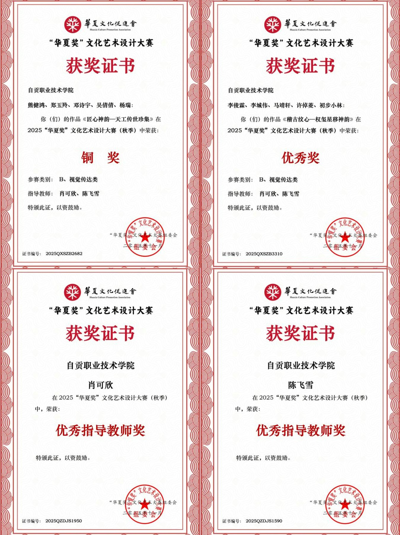 近日,由华夏文化促进会指导、华夏文化促进会素质教育委员会主办的2025“华夏奖”文化艺术设计大赛(秋季)圆满落幕。本次大赛共吸引全球2491支队伍参赛,涵盖国内外众多知名高校与艺术机构,包括中国美术学院、台湾大学、北京服装学院、景德镇陶瓷大学、四川美术学院等国内“双一流”高校,以及斯芬克、罗马智慧大学、威尔士三一圣大卫大学等国际顶尖艺术院校,竞争异常激烈。