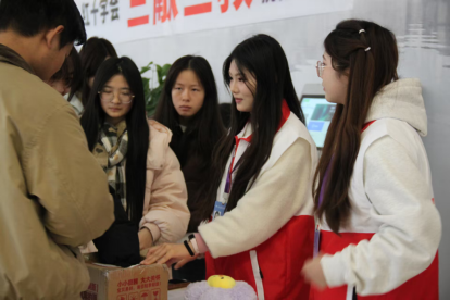 在活动现场,身着红白相间的志愿服装的学生志愿者们各司其职,洋溢着热情。他们向前来咨询的同学们耐心讲解“三献三救”的深远意义及具体流程,对每一个疑问都给予详尽的解答。