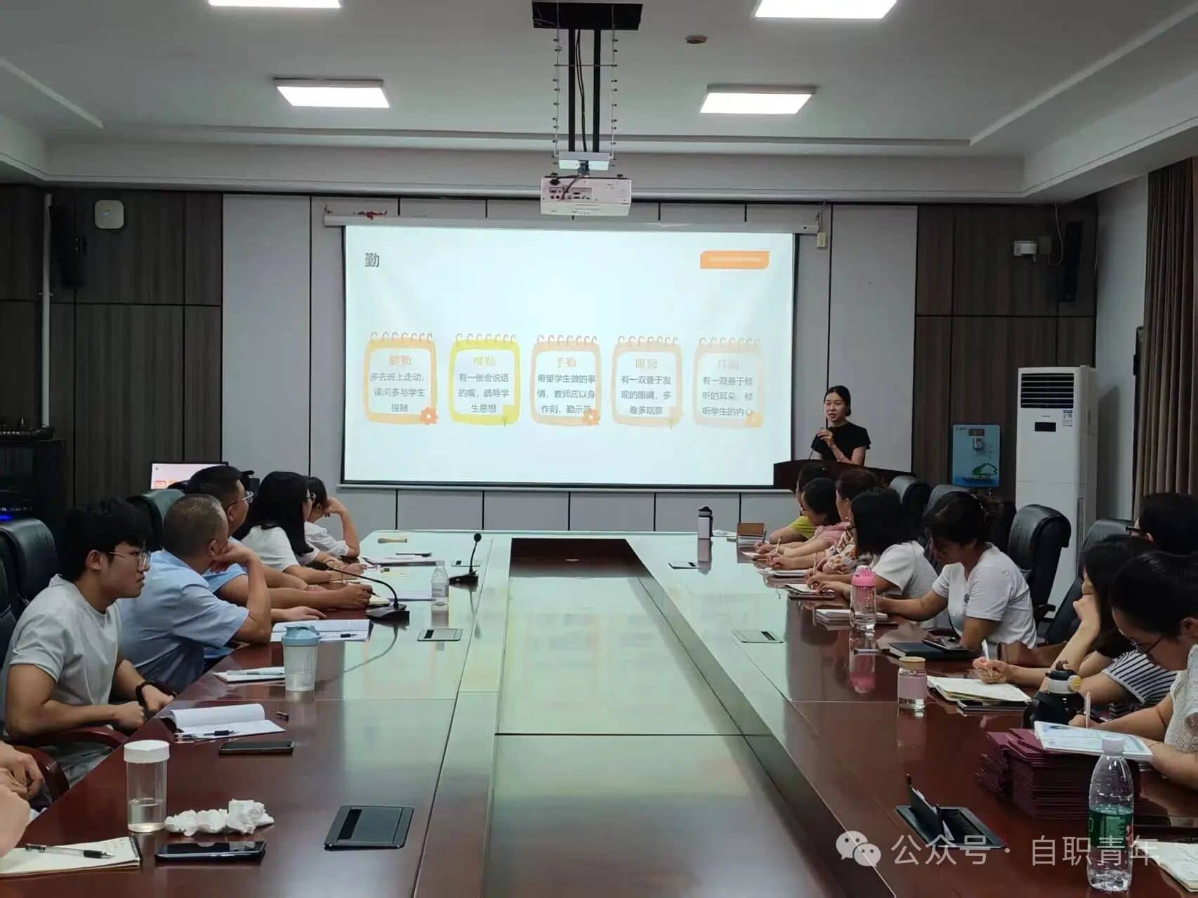 校团总支书记雷云清就以“心”赋能 共育花开为主题向全体班主任进行专题培训,主要以当代中职学生心理现状、心理表现等向全体班主任讲解了如何解决学生心理问题,同时也运用了大量的案例分析,指导班主任对班级学生进行心理健康教育。重视学生心理健康、关注学生健康成长。