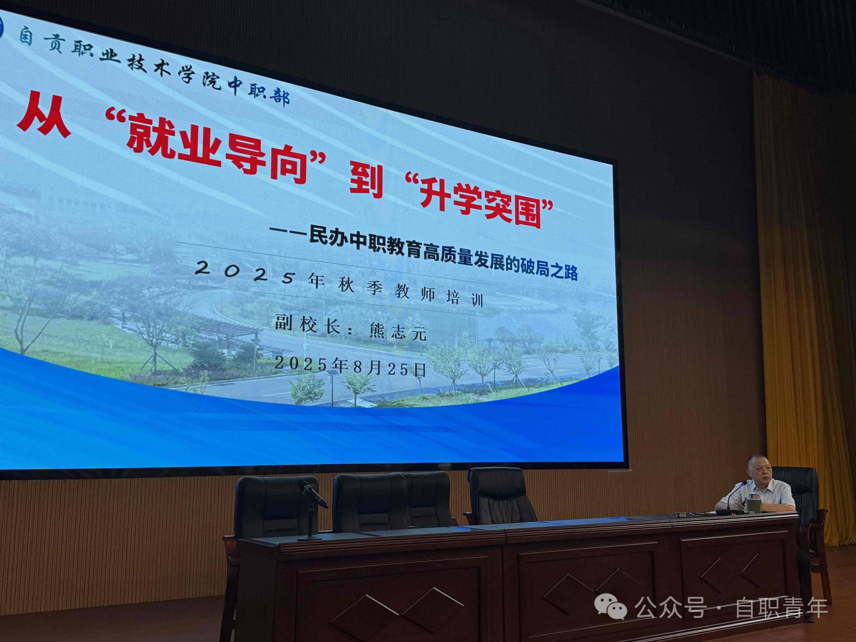 培训伊始,资深教育专家熊志元副校长为大家带来《从就业导向到升学突围——民办中职教育高质量发展的破局之路》精彩讲座。熊副校长深入剖析了当前民办中职教育面临的挑战,结合实际案例,详细阐述了如何从就业与升学两个维度精准发力,通过优化课程设置、加强校企合作、创新教学方法等举措,实现学校的高质量发展,为在场教师打开了新思路。