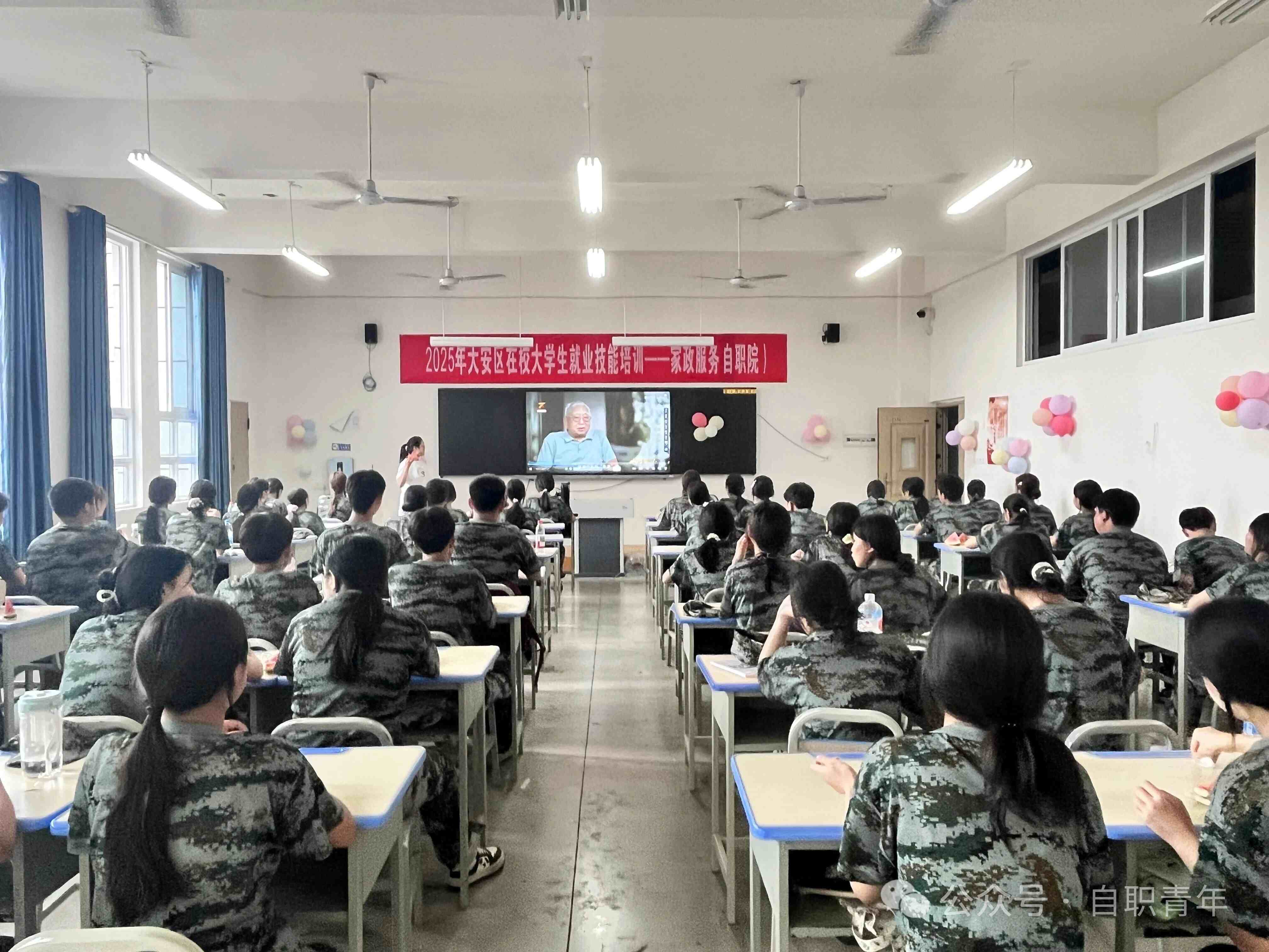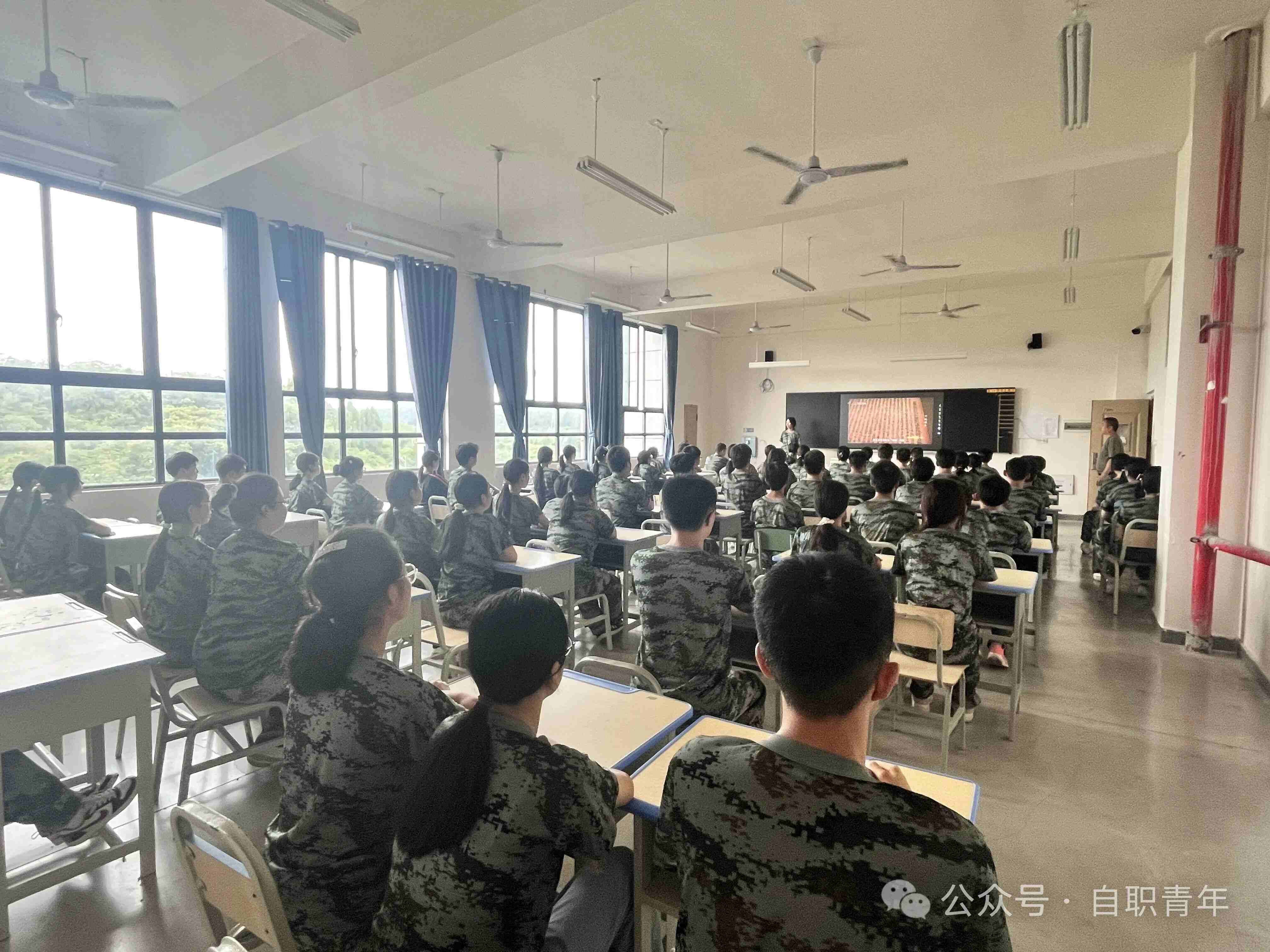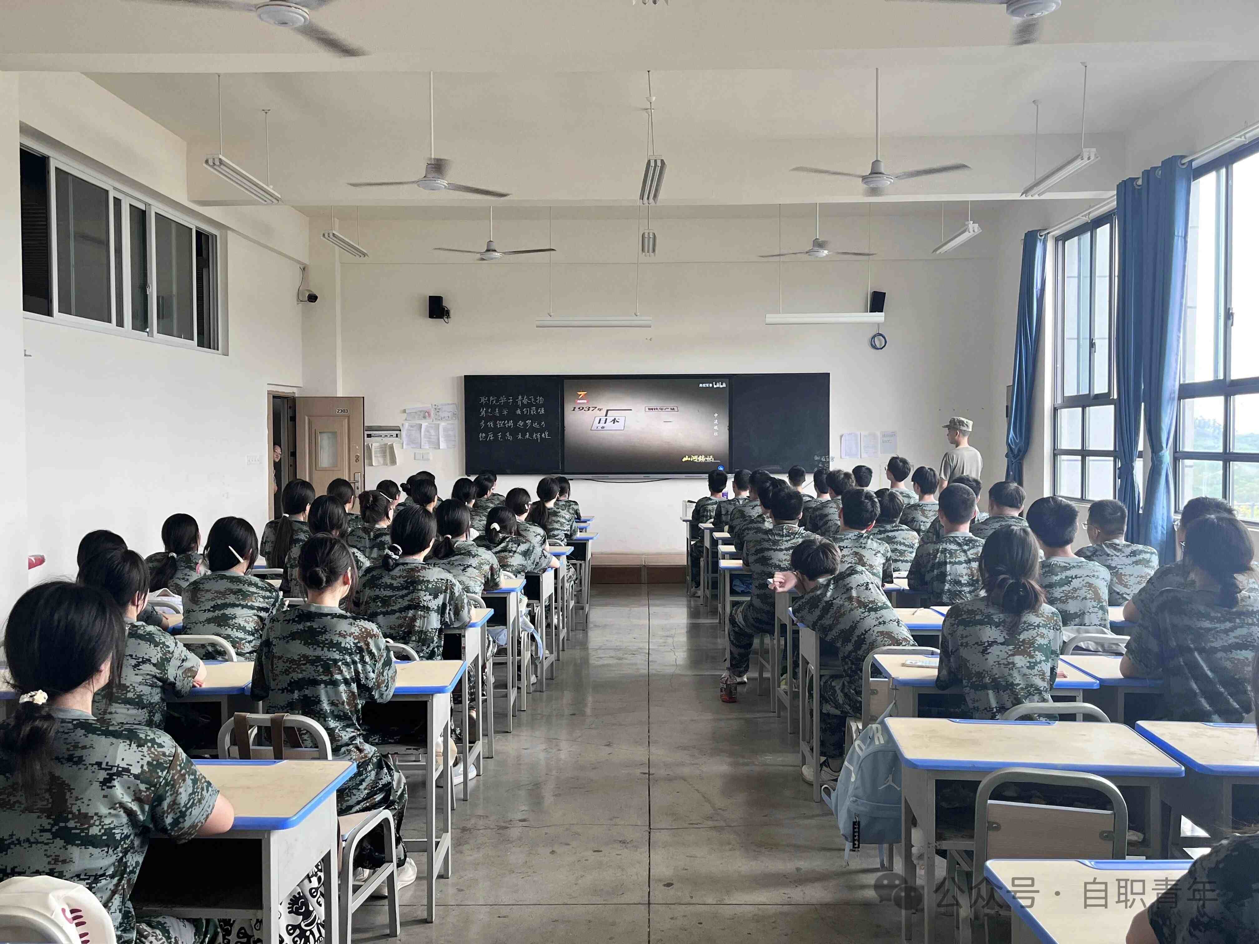 下午在教官的带领下,全体2025级学生在教室观看了为纪念中国人民抗日战争暨世界反法西斯战争胜利80周年,大型专题片《山河铭记》,观看过程中同学们精神抖擞,同学们纷纷表示通过视频的观看感受到了当前祖国的强大,同时要更加牢固树立爱党、爱国、爱校、爱家的精神,争当一名优秀的中职生。