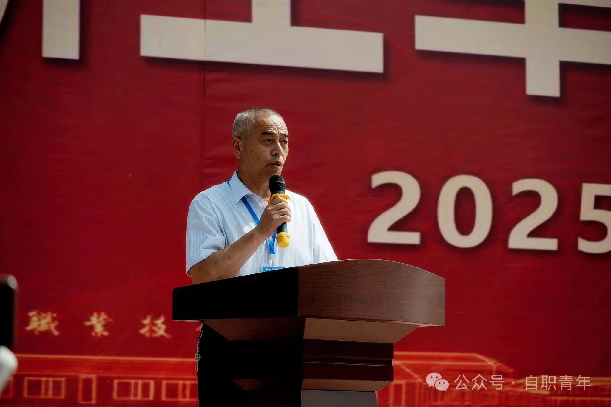 学校校长庞林华、副校长熊志元、办公室主任邓德林、学生处副主任杨树高(主持工作)、教务处副主任付娆(主持工作)、团总支书记雷云清、学生处副主任付小虎和全体军训军训教官、新生班主任以及2025级全体新同学参加大会。
